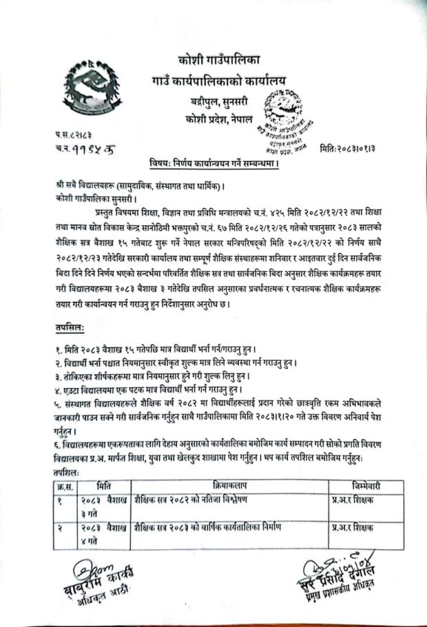 शैक्षिक सत्र शुरु हुनुभन्दा अगाडि विद्यार्थी भर्ना नगर्ने तथा शुल्क नलिने सम्बन्धमा।