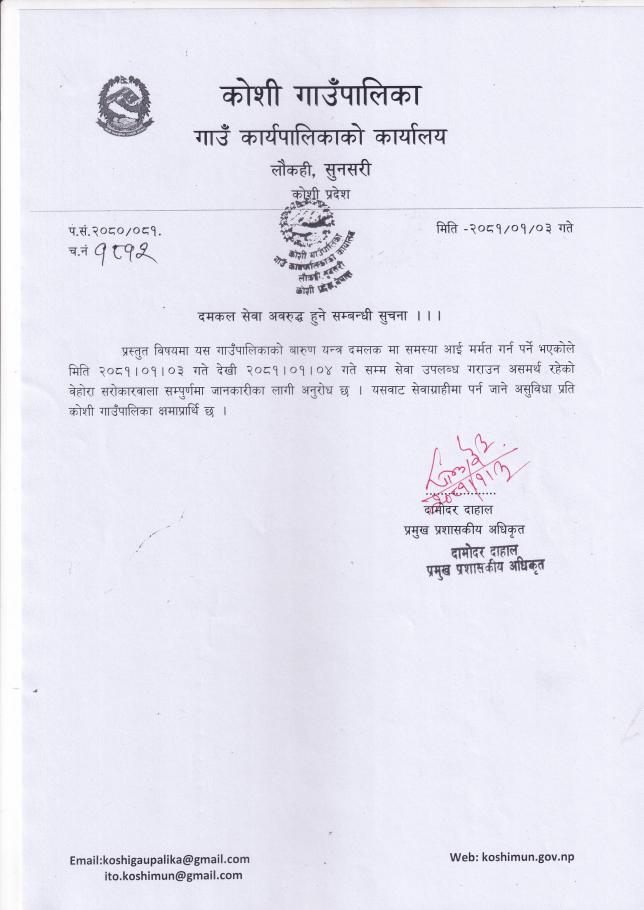 » दमकल सेवा अवरुद्ध हुने सम्बन्धी सुचना ।।।