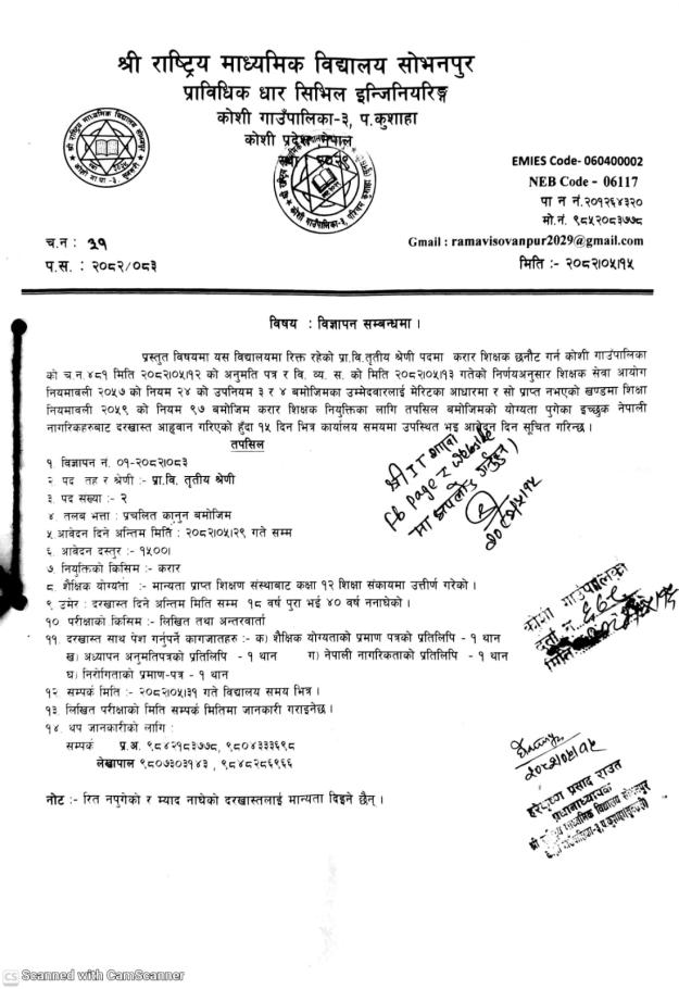 विज्ञापन प्रकाशित गरिएको सम्बन्धमा ।।।