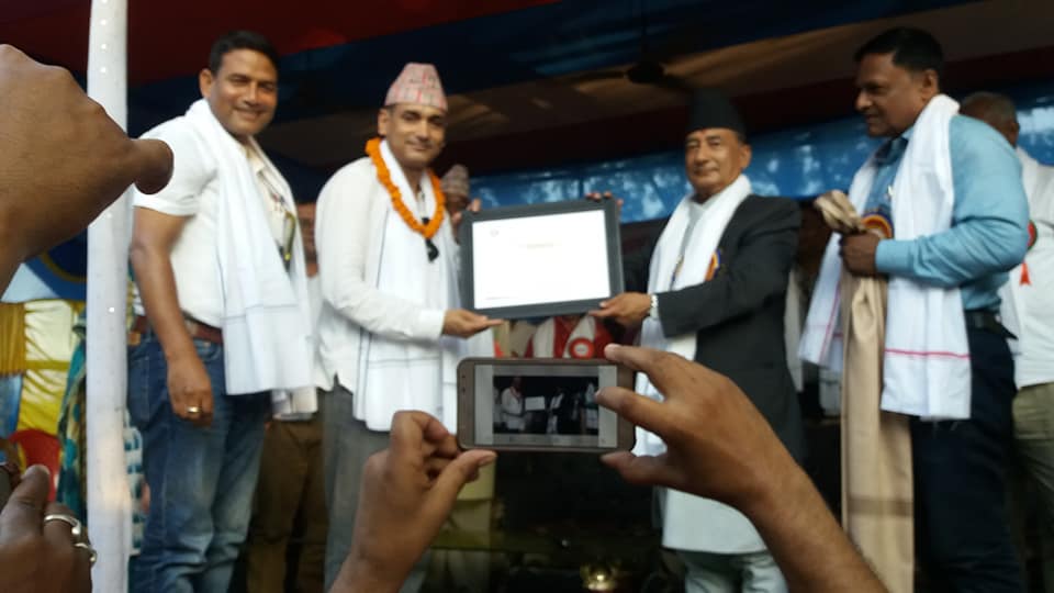 वाड न. २मा खाने पानीको लागि बोरिङ धसाउन कार्यक्रमको उद्घाटन साथै जग्गा दाता बिन्देश्वर साह लाई सरकार प्रमुख बाट आदरपुर्वक समान